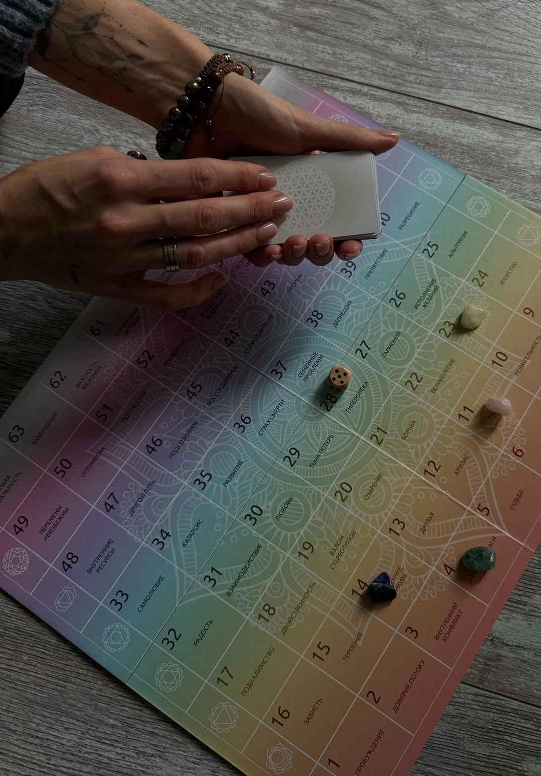 Как это работает? Во время игры вы бросаете кубики, отвечаете на вопросы и погружаетесь в мир своих мыслей. Вы сможете увидеть свою жизнь под другим углом, понять свои сильные стороны и где нужно сделать шаги к улучшению.